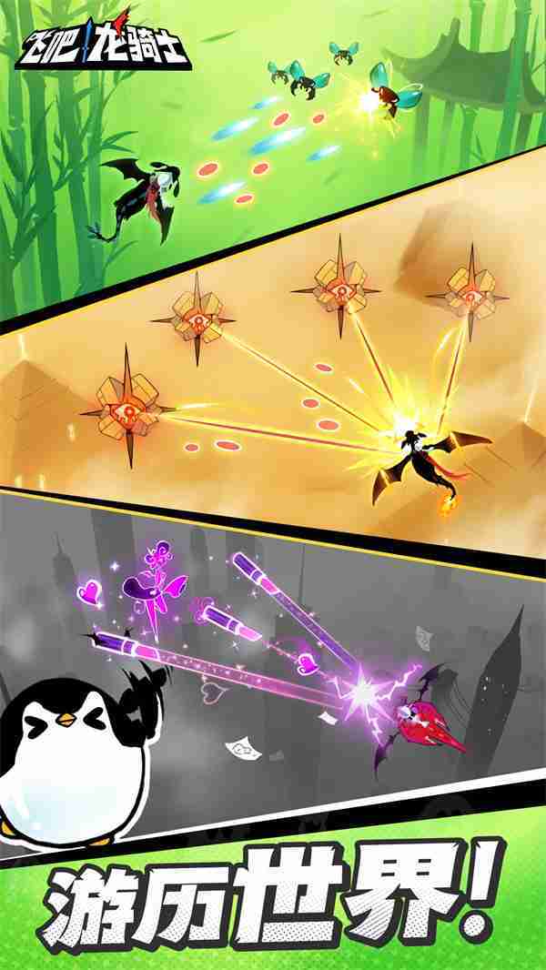 《飞吧龙骑士》是一款集合了飞行弹幕射击、、、Roguelike要素和挂机养成的休闲手游,,,,极具创意的吞食子弹反击玩法,,,,突破传统飞行射击的刻板限制,,,带来了独特的爽快清屏体验。。