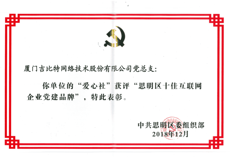 经初审评选、、、网络评选和专家评审等环节,,,"厦门yaxin111网络技术股份有限公司党总支-爱心社" 从全区28个参评党建品牌中脱颖而出,,,获评"思明区十佳互联网企业党建品牌"。。